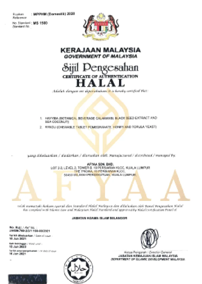 AFYAA Hayyiba disahkan HALAL oleh JAKIM, bebas daripada logam berat,
